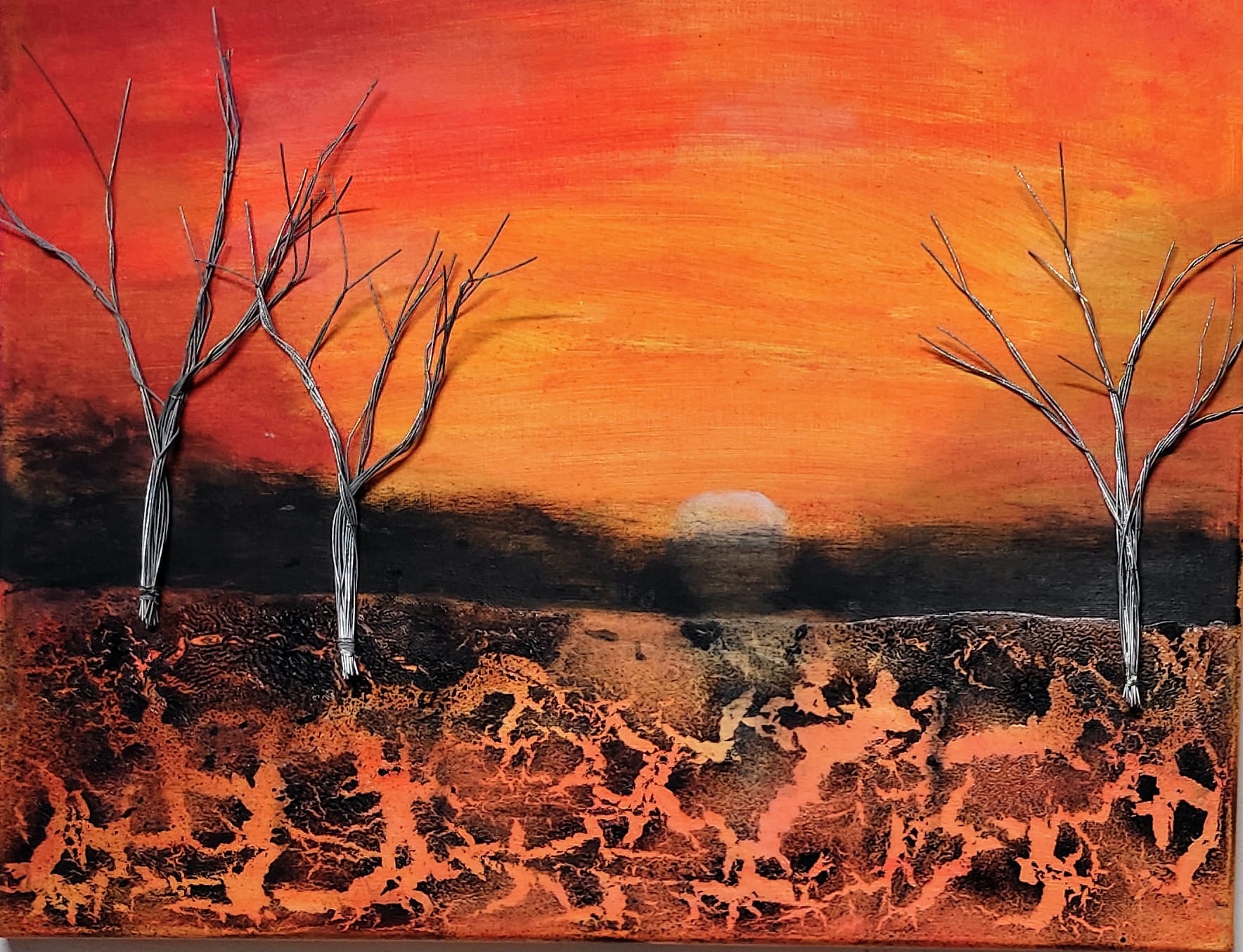 בציורים אני משתמשת בחמרי Powertex בשילוב עם חומרים שונים וצבעים אקריליים.